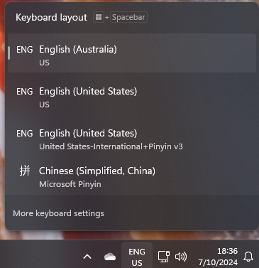 Once you have the new language installed in Windows you can select it from the language selector in the system tray at the bottom right of you desktop. A handy keyboard shortcut is to hold down the windows key and press spacebar to cycle through your installed languages.